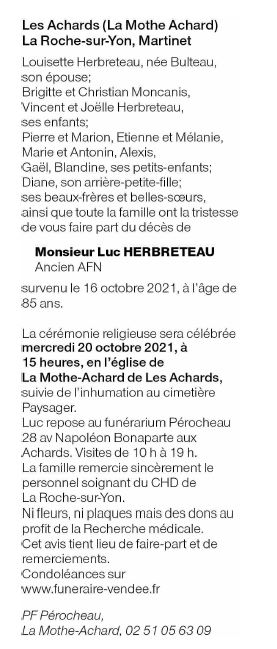 Décédé à La Roche-sur-Yon (85000, France) le samedi 16 octobre 2021 à l'âge de 85 ans