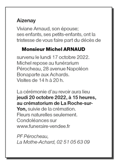 Epoux de Madame Viviane ARNAUD née PERROCHEAU
