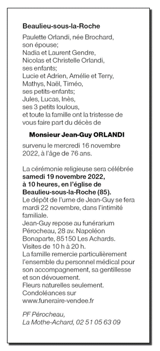 Epoux de Madame Paulette ORLANDI née BROCHARD