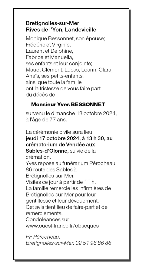 Décédé à La Roche-sur-Yon (85000, France) le dimanche 13 octobre 2024 à l'âge de 77 ans
