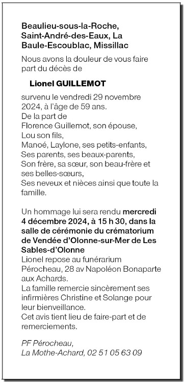 Décédé à La Roche-sur-Yon (85000, France) le vendredi 29 novembre 2024 à l'âge de 59 ans