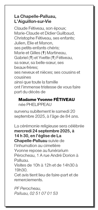 Madame Yvonne FÉTIVEAU née PHELIPPEAU