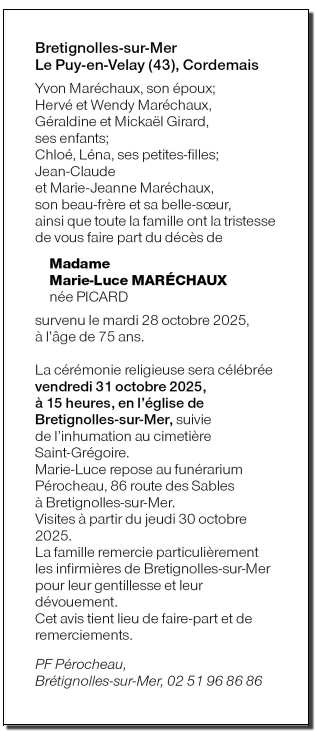 Madame Marie-Luce MARÉCHAUX née PICARD