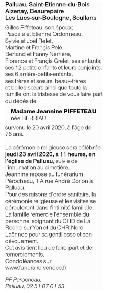 Madame Jeannine PIFFETEAU née BERRIAU
