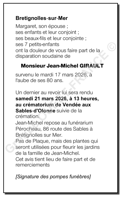 Epoux de Madame Margaret GIRAULT née TARDY