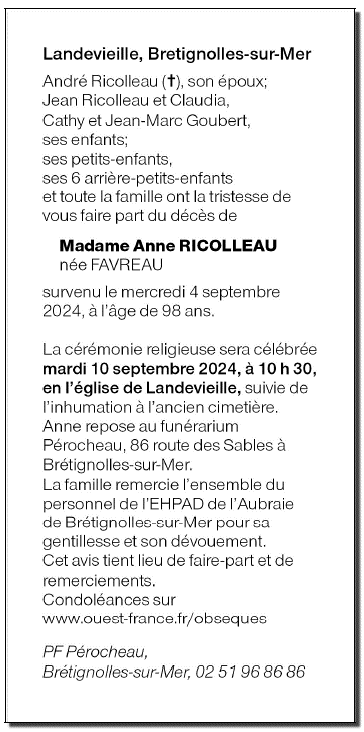 Madame Anne RICOLLEAU née FAVREAU