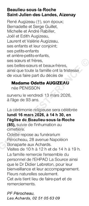 Madame Odette AUGIZEAU née PENISSON