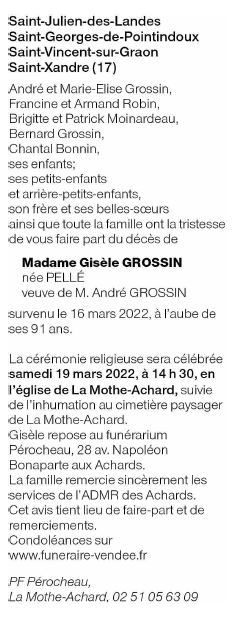 Madame Gisèle GROSSIN née PELLÉ