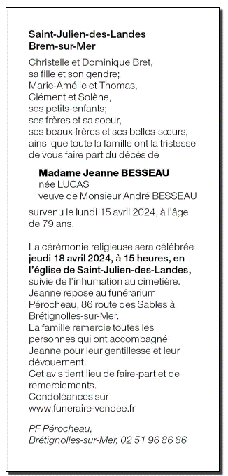 Madame Jeanne BESSEAU née LUCAS