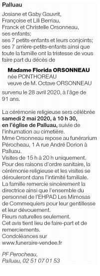 Décédée à Commequiers (85220, France) le mardi 28 avril 2020 à l'âge de 91 ans