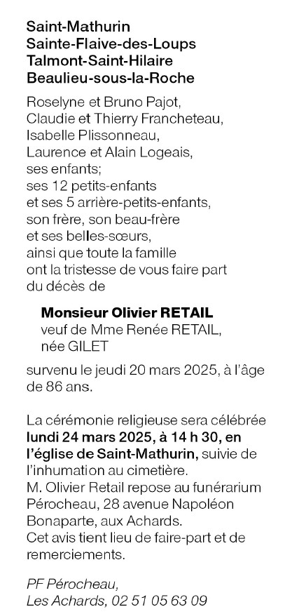 Décédé à Les Sables d'Olonne (85100, France) le jeudi 20 mars 2025 à l'âge de 86 ans