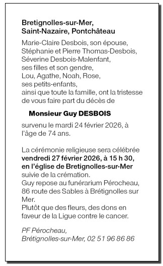 Décédé à Nantes (44000, France) le mardi 24 février 2026 à l'âge de 74 ans