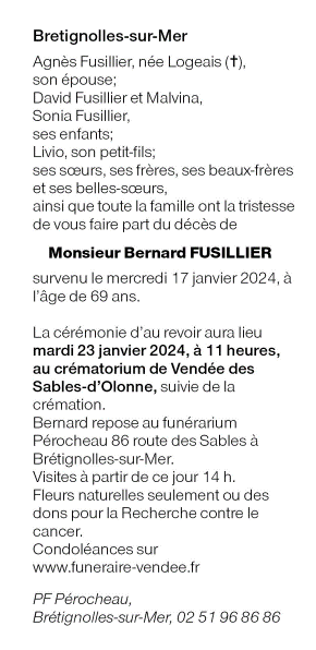 Décédé à Les Sables d'Olonne (85340, France) le mercredi 17 janvier 2024 à l'âge de 69 ans
