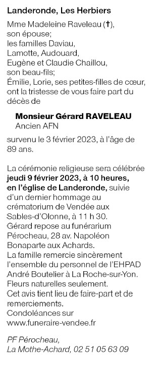 Décédé à La Roche-sur-Yon (85000, France) le vendredi 3 février 2023 à l'âge de 89 ans