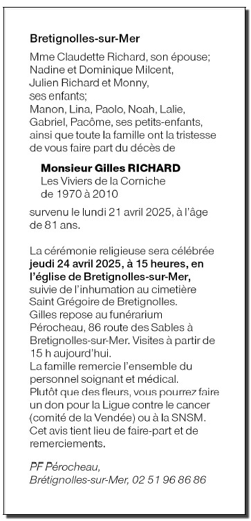 Décédé à La Roche-sur-Yon (85000, France) le lundi 21 avril 2025 à l'âge de 81 ans