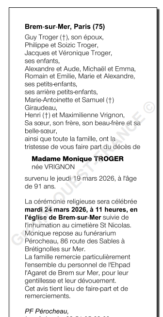 Veuve de Monsieur Guy TROGER