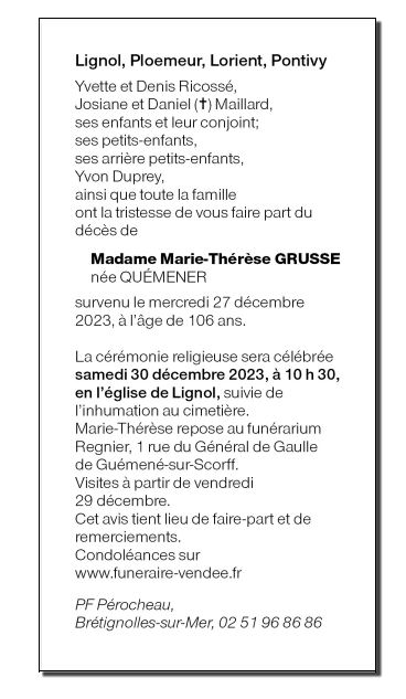 Madame Marie-Thérèse GRUSSE née QUEMENER