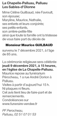 Décédé à La Roche-sur-Yon (85000, France) le mardi 7 décembre 2021 à l'âge de 85 ans