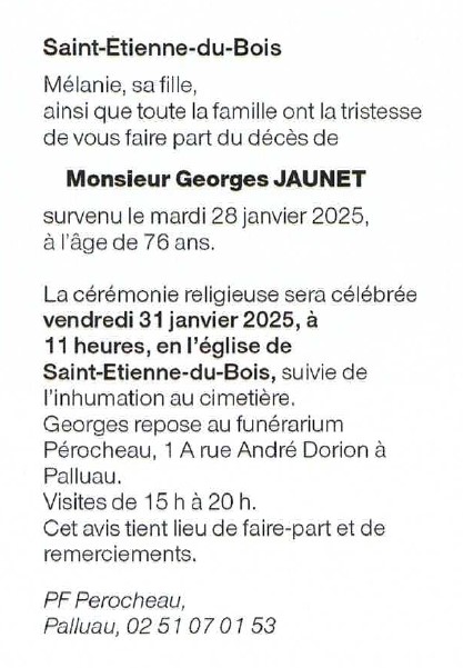 Décédé à La Roche-sur-Yon (85000, France) le mardi 28 janvier 2025 à l'âge de 76 ans