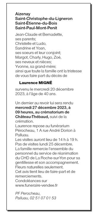 Décédée à La Roche-sur-Yon (85000, France) le mercredi 20 décembre 2023 à l'âge de 40 ans