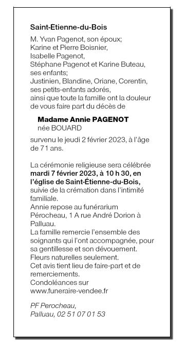 Epouse de Monsieur Yvan PAGENOT