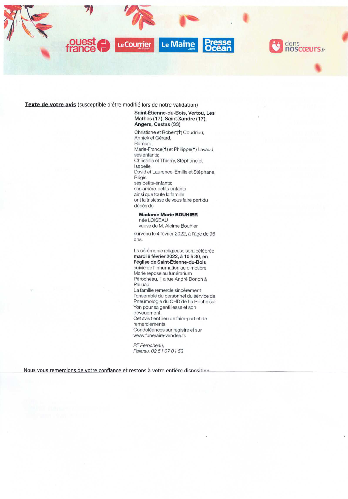 Décédée à La Roche-sur-Yon (85000, France) le vendredi 4 février 2022 à l'âge de 96 ans
