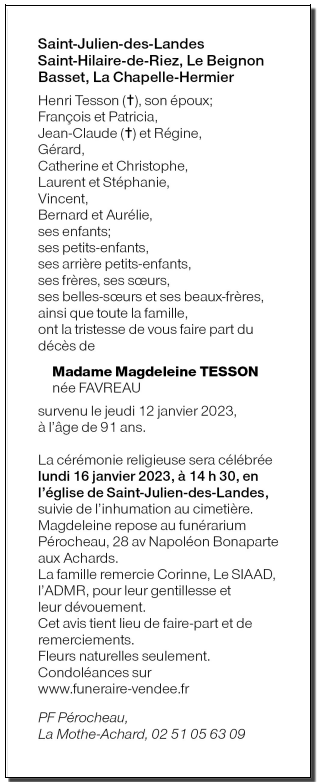Madame Marie Magdeleine TESSON née FAVREAU