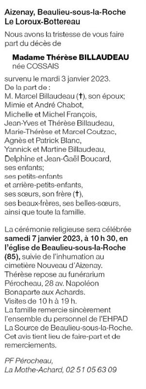 Madame Thérèse BILLAUDEAU née COSSAIS