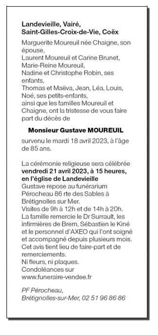 Décédé à Landevieille (85220, France) le mardi 18 avril 2023 à l'âge de 85 ans