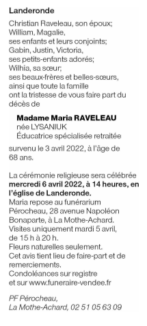 Madame Maria RAVELEAU née LYSANIUK
