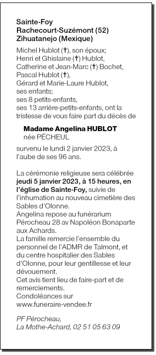Veuve de Monsieur Michel Roger Jean HUBLOT