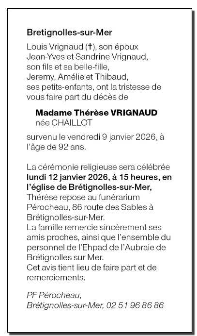 Madame Thérèse VRIGNAUD née CHAILLOT