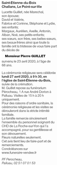 Décédé à La Roche-sur-Yon (85000, France) le jeudi 23 avril 2020 à l'âge de 68 ans