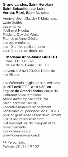 Madame Anne-Marie GUITTET née PÉROCHEAU