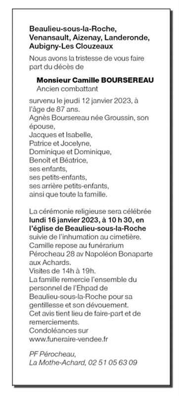 Décédé à Beaulieu-sous-la-Roche (85190, France) le jeudi 12 janvier 2023 à l'âge de 87 ans