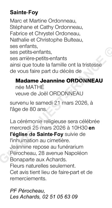 Veuve de Monsieur Joël ORDONNEAU