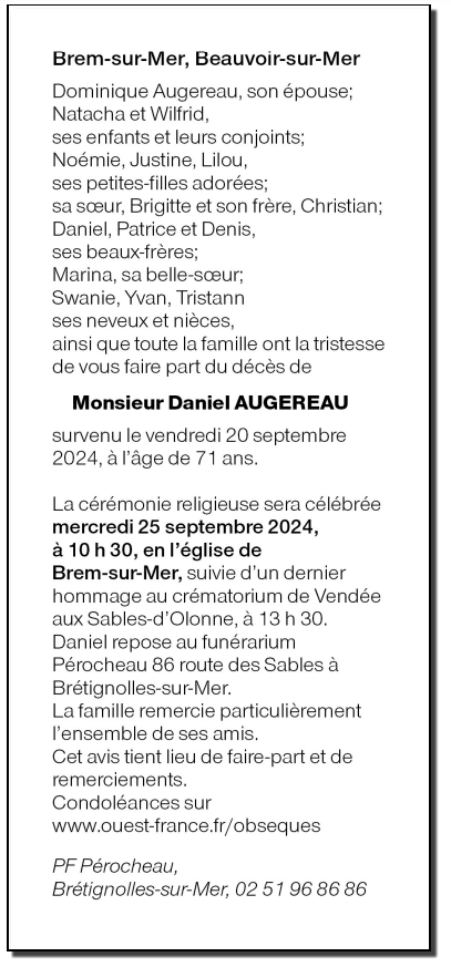 Décédé à Brem-sur-Mer (85470, France) le vendredi 20 septembre 2024 à l'âge de 71 ans
