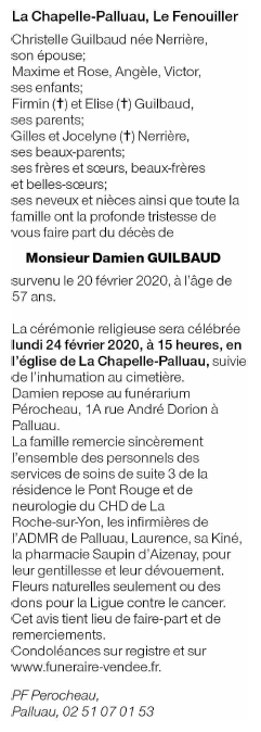 Décédé à La Roche-sur-Yon (85000, France) le jeudi 20 février 2020 à l'âge de 57 ans