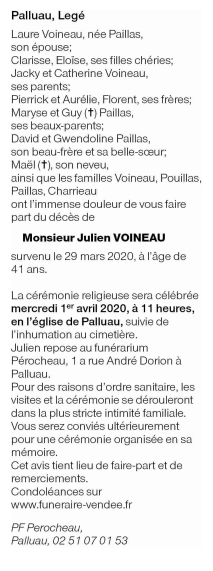 Décédé à Palluau (85670, France) le dimanche 29 mars 2020 à l'âge de 41 ans