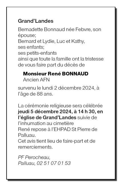 Décédé à La Roche-sur-Yon (85000, France) le lundi 2 décembre 2024 à l'âge de 88 ans