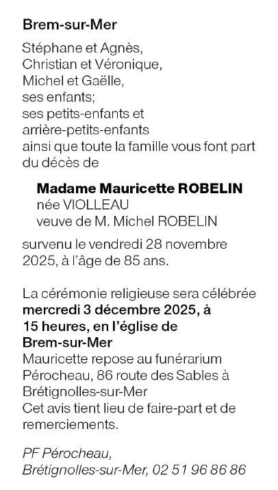 Madame Mauricette ROBELIN née VIOLLEAU