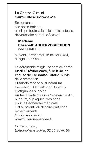 Madame Elisabeth ABHERVEGUEGUEN née CHAILLOT