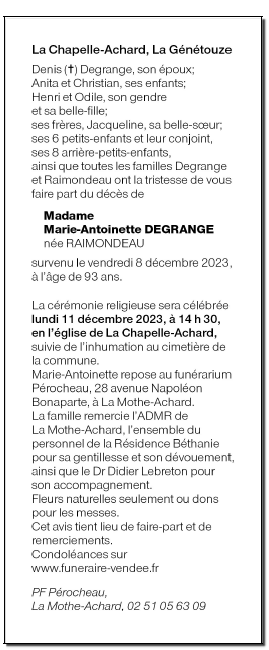 Madame Marie-Antoinette DEGRANGE née RAIMONDEAU