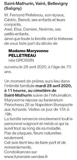 Décédée à Les Sables d'Olonne (85100, France) le dimanche 26 avril 2020 à l'âge de 70 ans